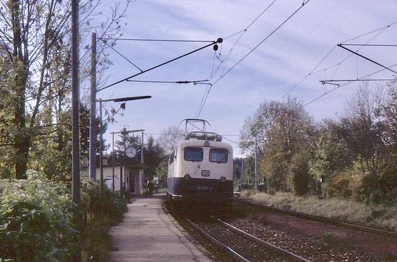 141 037 mit Regionalbahn nach Landshut am damaligen Haltepunkt Marzling, Herbst 1993