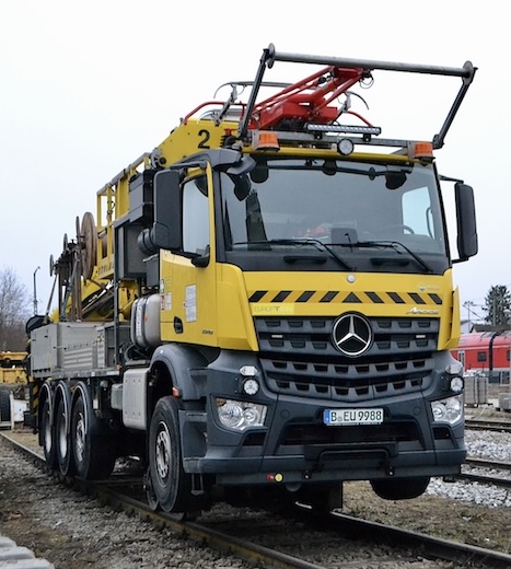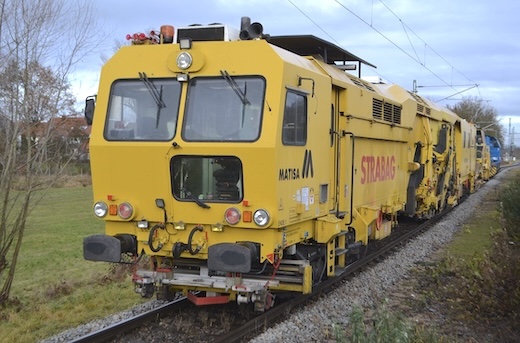 Kranzug der Gleisbaufirma SPITZKE im Bahnhof Freising
