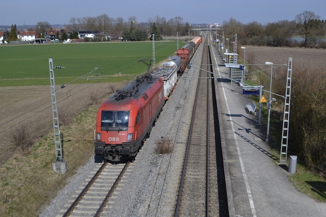![]() 13:53 - ELP 2159 271 (Netzwerkbahn) mit KLV Kesselzug in Richtung München ![]() 14:10 - RTB Cargo 193 430 mit ARS-Autozug in Richtung München Kilometer 36,4 -