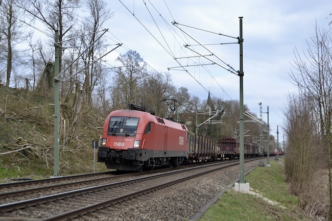 ![]() 14:09 - ÖBB 1116 151 mit gemischten Güterzug in Richtung München